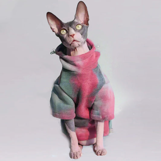 Tie Dye Sphynx Cat Fleece Toggle Hoody
