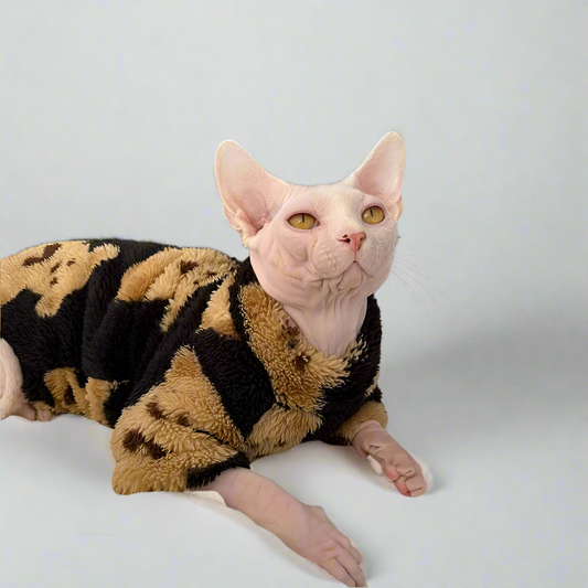 SPECIAL ORDERAnimal Print Fluffy Sphynx Cat Fleece Cardigan
