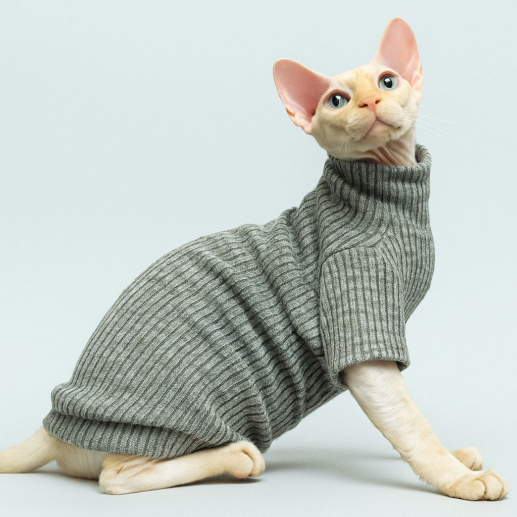 Ribbed Knit Sphynx Cat Sweater - Grey